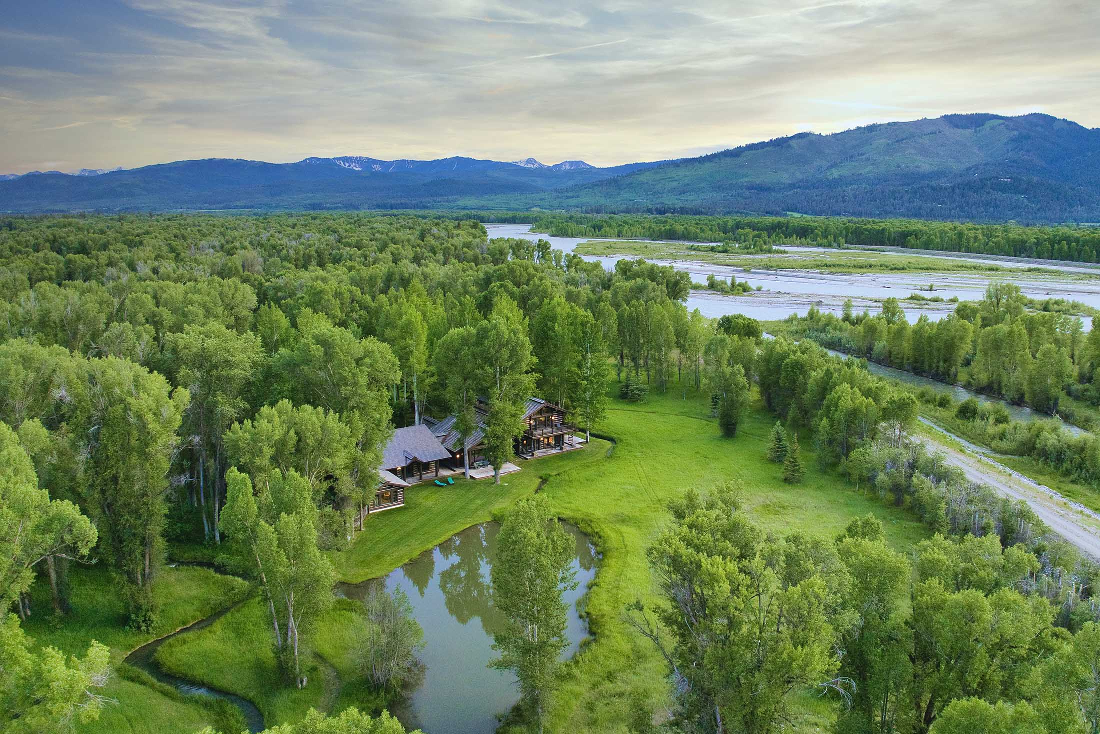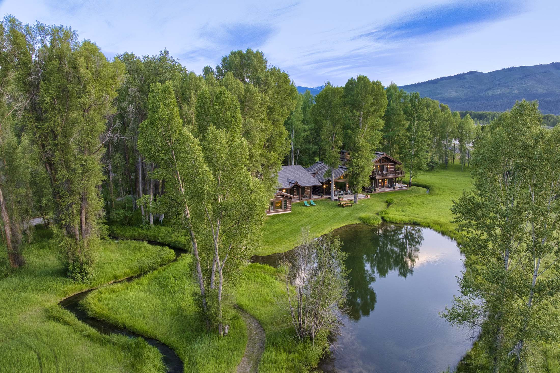 RR Lodge is a 21.18-acre riverfront sanctuary where water shapes every moment of living. Set near the end of Ely Springs Road, the property offers uncommon privacy, surrounded by flowing channels of Ely Springs Creek and centered around a reflective spring-fed pond that wraps the home in mirrored light. A quarter mile of private Snake River frontage anchors the western edge, while the Grand Teton rises to the north—a rare alignment of water, mountain, and seclusion just minutes from Jackson. With a handcrafted 5,906 sq ft lodge-style residence, guest house, studio, barn, and a restored trout habitat, this property is defined by its water, privacy, and sense of place.